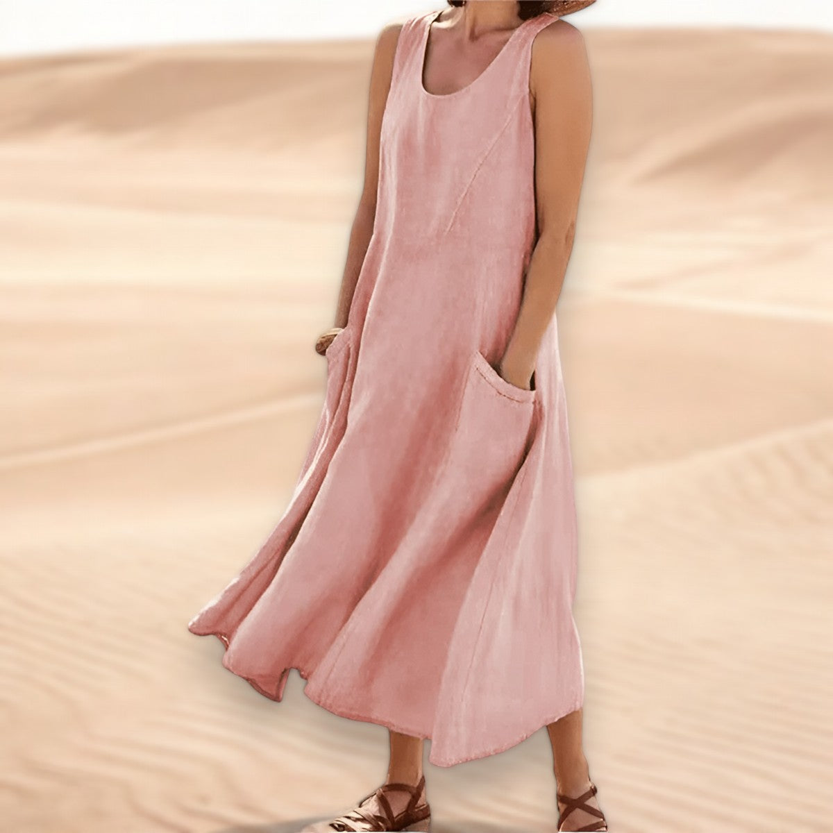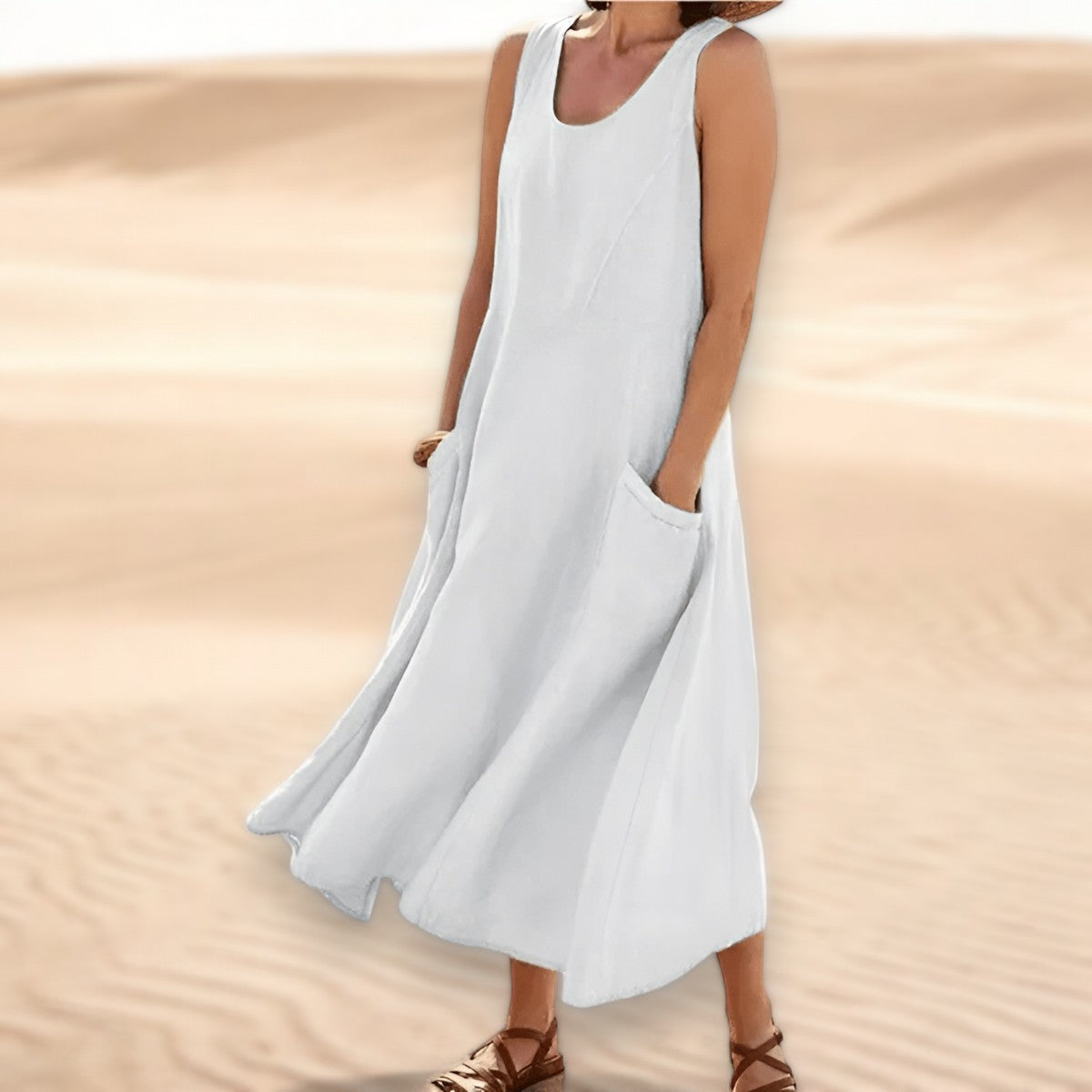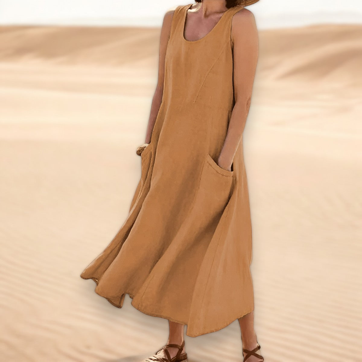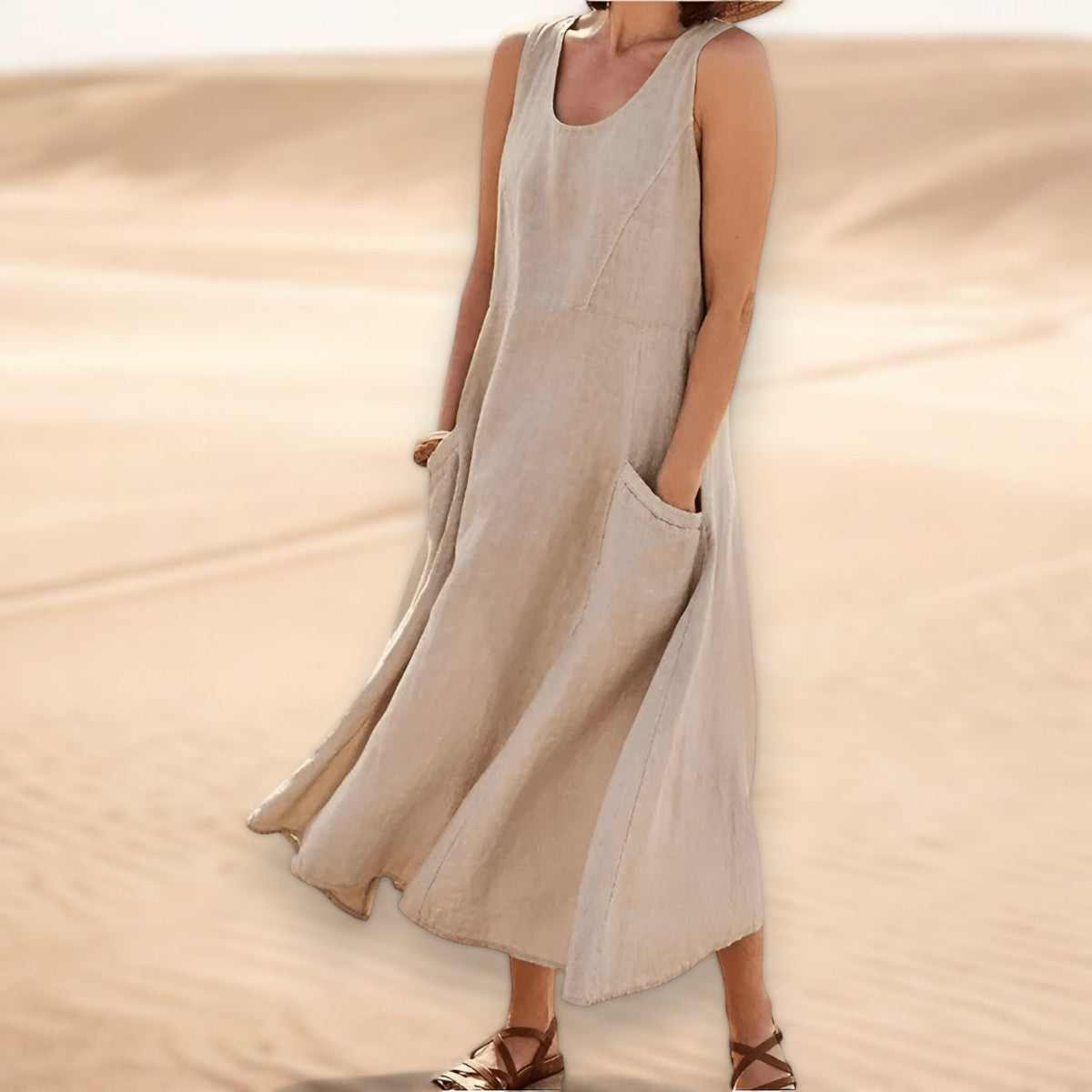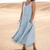 ✨ Högkvalitativt Material: Tillverkad av ren linne, erbjuder denna klänning exceptionell andningsförmåga och optimal komfort för varma dagar. Linnetyget är mjukt mot huden och ger en behaglig känsla hela dagen.