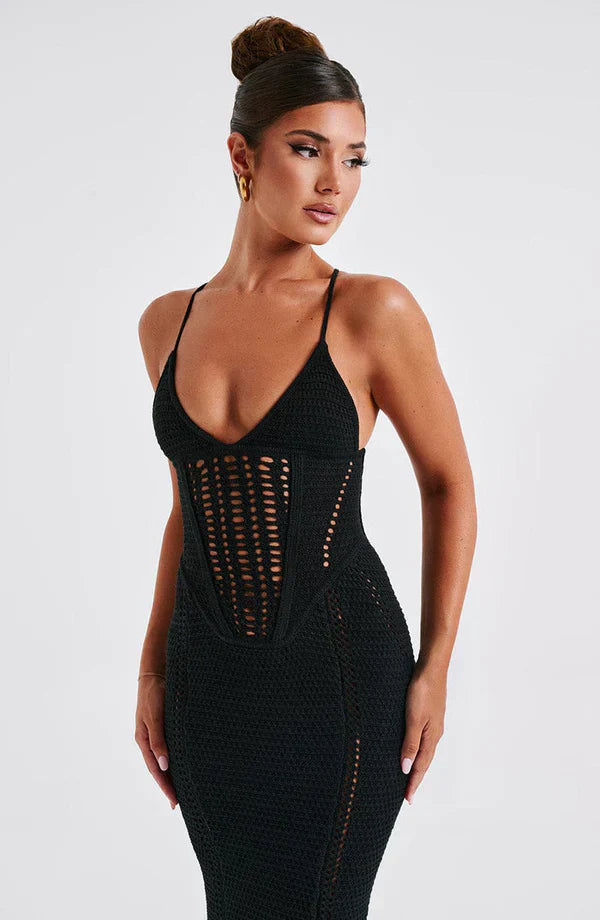 Vår fantastiska maxiklänning är perfekt för varje tillfälle och kommer säkert att bli din nya favorit. Tillverkad av mjukt virkat tyg med lätt stretch, formar den sig vackert efter din figur.